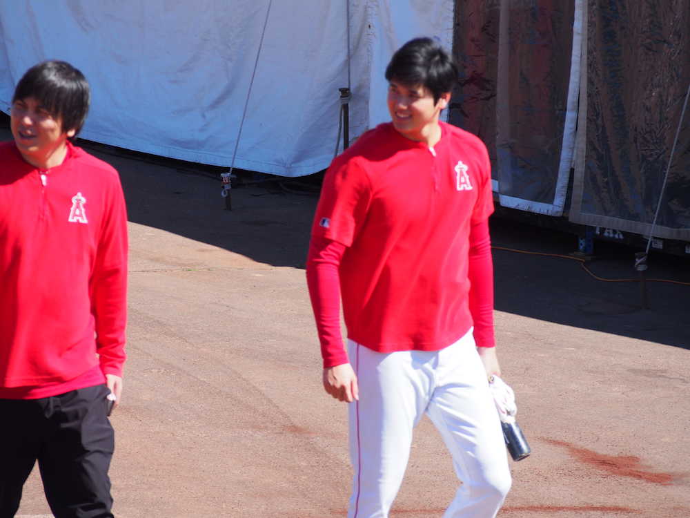 練習後には昨年11月に発売された自身の伝記「SHOHEI OHTANI 二刀流、日本のスーパースターの驚くべき物語」の著者ジェイ・パリス氏から本を直接、手渡される場面もあった。