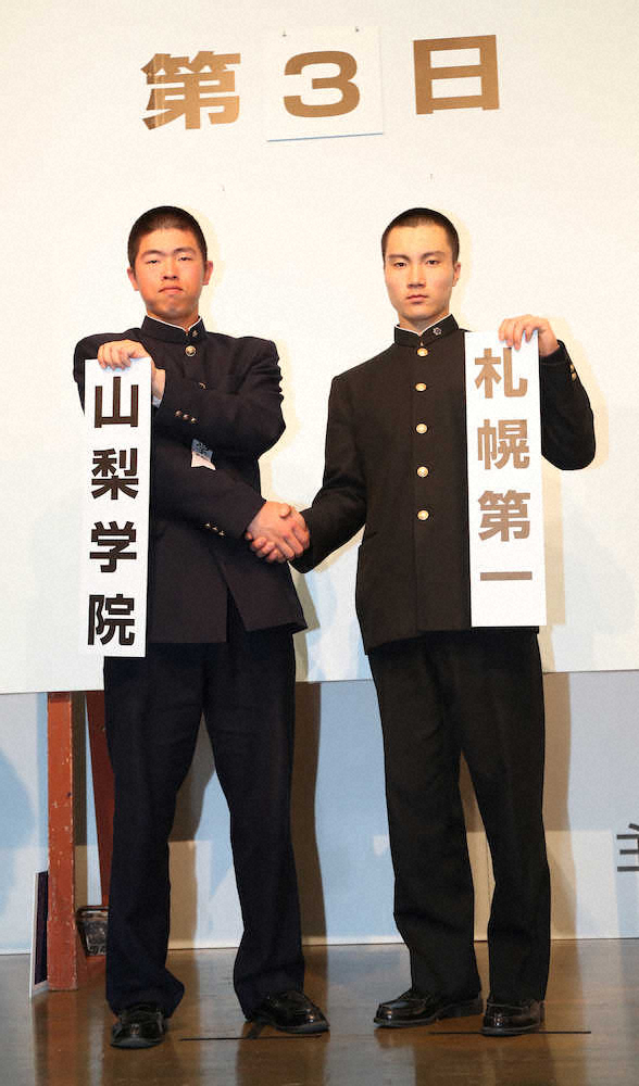 第91回選抜高校野球大会(23日開幕、甲子園)の組み合わせ抽選会が15日、大阪市内で行われた。大会3日目の第3試合で山梨学院との対戦が決定した札幌第一は、過去2度の出場時も大会3日目第3試合。不思議な縁を感じながら三度目の正直でセンバツ初勝利を目指す。昨秋の明治神宮覇者の札幌大谷は大会2日目第3試合で米子東(鳥取)と対戦する。